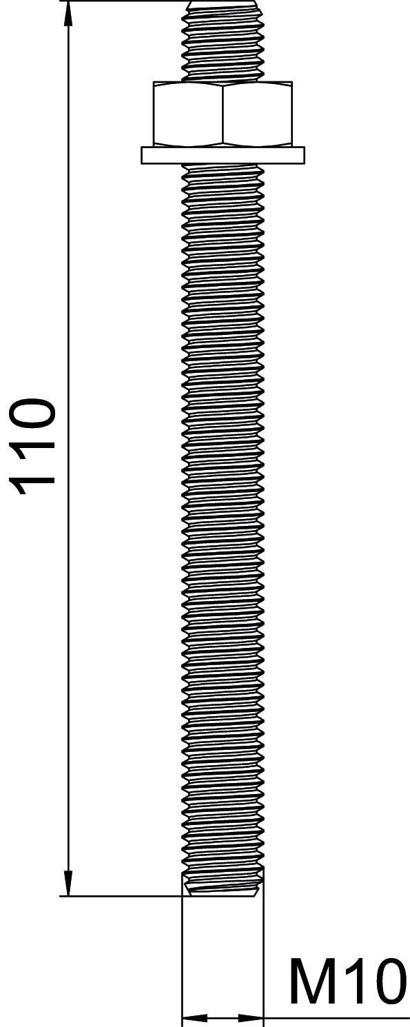 Colour zinc Depth marking no Diameter 10 mm Dimension 10x110 Dimension d 10 mm Dimension D 10 mm Dimension L 110 mm Length 110 mm Material Steel Resistance grade 5.8 Surface Electrogalvanized Thread M10 Thread metric 10 Thread type Metric With external thread yes - All types