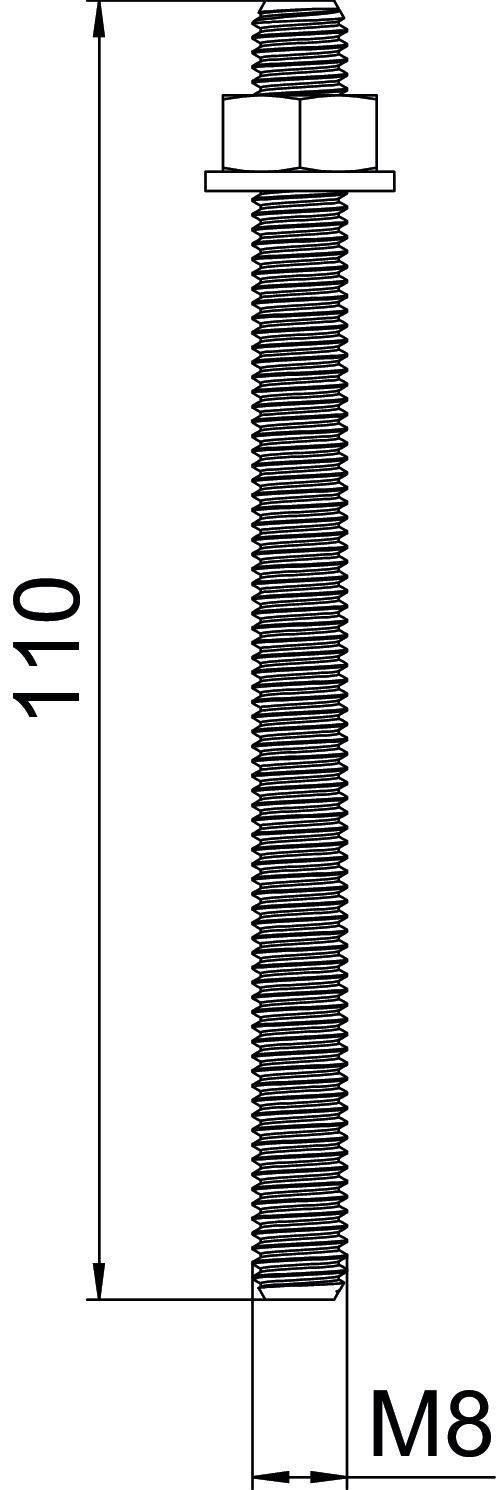 Colour zinc Depth marking no Diameter 8 mm Dimension 8x110 Dimension D 8 mm Dimension d 8 mm Dimension L 110 mm Length 110 mm Material Steel Resistance grade 8.8 Surface Electrogalvanized Thread M8 Thread metric 8 Thread type Metric With external thread yes - All types