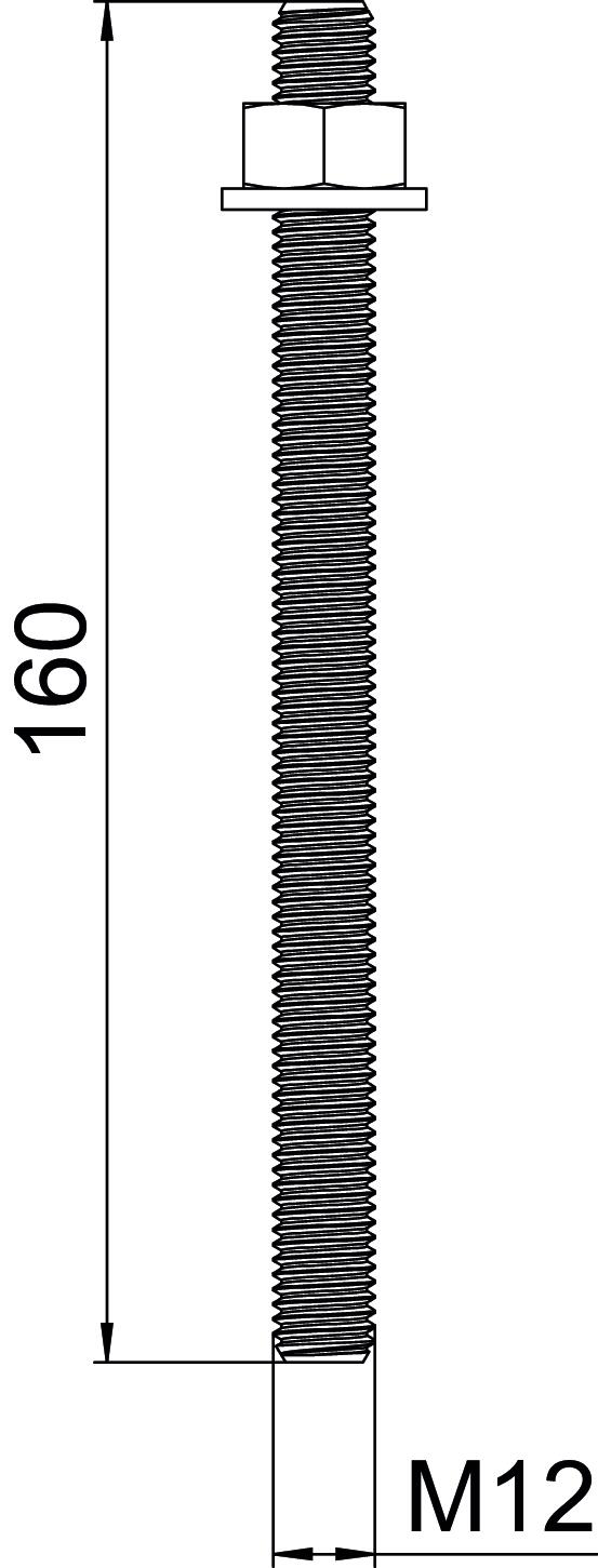 Colour zinc Depth marking no Diameter 12 mm Dimension 12x160 Dimension d 12 mm Dimension D 12 mm Dimension L 160 mm Length 160 mm Material Steel Resistance grade 5.8 Surface Electrogalvanized Thread M12 Thread metric 12 Thread type Metric With external thread yes - All types