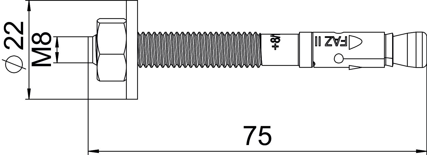 Anchor/nail/bolt version Spreading anchor Approvals available yes Clamping range, max. 20 mm Clamping range, min. 10 mm Colour stainless steel Dimension M8x75 Dimension L 75 mm Drill hole diameter, min. 8 mm Length 75 mm Material Stainless steel Thread M8 Thread length 38 mm Thread metric 8 Thread type Metric Version for For pushing in - All types
