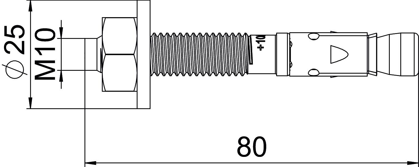 Anchor/nail/bolt version Spreading anchor Approvals available yes Clamping range, max. 10 mm Colour zinc Dimension M10x75 Dimension L 75 mm Drill hole diameter, min. 10 mm Length 75 mm Material Steel Surface Electrogalvanized Thread M10 Thread length 33 mm Thread metric 10 Thread type Metric Version for For pushing in - All types