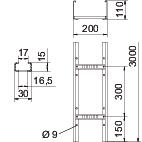 CO2 Footprint (GWP) Cradle-to-Gate 9,0417 kg CO2e / 1 Meter Colour zinc Dimension 110x200x3000 Dimension 110x200x3000 Dimension B 200 mm Fastening of rung Blind riveted Height 110 mm Length 3000 mm Maintain electrical functions no Material Steel Rail thickness 1,5 mm Rung distance 300 mm Rung slot dimension 16,50 Rustproof steel, pickled no Side perforation yes Side rail version Flat profile Support spacing 2.0 m 3,1 kN/m Support spacing 2.5 m 2 kN/m Support spacing 3.0 m 1,4 kN/m Support spacing 3.5 m 0,9 kN/m Support spacing 4.0 m 0,65 kN/m Support spacing 4.5 m 0,55 kN/m Support spacing 5.0 m 0,5 kN/m Support spacing 6.0 m 0,15 kN/m Surface Strip galvanized Usable cross-section 18800 mm² Usable cross-section 188 cm² Version of the rungs Profile perforated Wide-span version no Width 200 mm Technical data