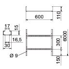 CO2 Footprint (GWP) Cradle-to-Gate 10,9889 kg CO2e / 1 Meter Colour zinc Dimension 110x600x6000 Dimension 110x600x6000 Dimension B 600 mm Fastening of rung Blind riveted Height 110 mm Length 6000 mm Maintain electrical functions no Material Steel Rail thickness 1,5 mm Rung distance 300 mm Rung slot dimension 16,50 Rustproof steel, pickled no Side perforation yes Side rail version Flat profile Support spacing 2.0 m 3,1 kN/m Support spacing 2.5 m 2 kN/m Support spacing 3.0 m 1,4 kN/m Support spacing 3.5 m 0,9 kN/m Support spacing 4.0 m 0,65 kN/m Support spacing 4.5 m 0,55 kN/m Support spacing 5.0 m 0,5 kN/m Support spacing 6.0 m 0,15 kN/m Surface Hot-dip galvanised Usable cross-section 568 cm² Usable cross-section 56800 mm² Version of the rungs Profile perforated Wide-span version no Width 600 mm Technical data