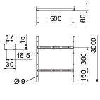 CO2 Footprint (GWP) Cradle-to-Gate 8,0922 kg CO2e / 1 Meter Colour zinc Dimension 60x500x3000 Dimension 60x500x3000 Dimension B 500 mm Fastening of rung Blind riveted Height 60 mm Length 3000 mm Maintain electrical functions no Material Steel Rail thickness 1,5 mm Rung distance 300 mm Rung slot dimension 16,50 Rustproof steel, pickled no Side perforation yes Side rail version Flat profile Support spacing 1.5 m 3,1 kN/m Support spacing 2.0 m 2,25 kN/m Support spacing 2.5 m 1,5 kN/m Support spacing 3.0 m 1,1 kN/m Support spacing 3.5 m 0,75 kN/m Support spacing 4.0 m 0,45 kN/m Support spacing 4.5 m 0,3 kN/m Support spacing 5.0 m 0,15 kN/m Surface Strip galvanized Usable cross-section 24800 mm² Usable cross-section 248 cm² Version of the rungs Profile perforated Wide-span version no Width 500 mm Technical data