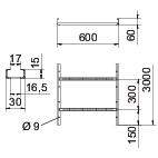 CO2 Footprint (GWP) Cradle-to-Gate 8,4917 kg CO2e / 1 Meter Colour zinc Dimension 60x600x3000 Dimension B 600 mm Fastening of rung Blind riveted Height 60 mm Length 3000 mm Maintain electrical functions no Material Steel Rail thickness 1,5 mm Rung distance 300 mm Rung slot dimension 16,50 Rustproof steel, pickled no Side perforation yes Side rail version Flat profile Support spacing 1.5 m 3,1 kN/m Support spacing 2.0 m 2,25 kN/m Support spacing 2.5 m 1,5 kN/m Support spacing 3.0 m 1,1 kN/m Support spacing 3.5 m 0,75 kN/m Support spacing 4.0 m 0,45 kN/m Support spacing 4.5 m 0,3 kN/m Support spacing 5.0 m 0,15 kN/m Surface Hot-dip galvanised Usable cross-section 29800 mm² Usable cross-section 298 cm² Version of the rungs Profile perforated Wide-span version no Width 600 mm Technical data