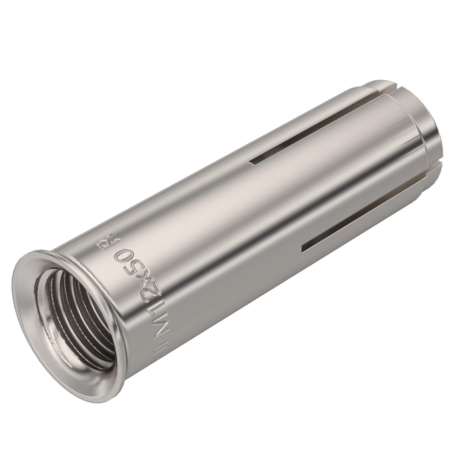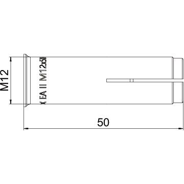 Product descriptionDrop-in anchor for multiple fastening, with internal thread in steel, for the anchoring of, for example, cable tray systems, consoles, steel conctructions, etc. in uncracked concrete in indoor and outdoor areas. To knock in with a hammer. With an edge to prevent the anchor from being pulled in. Rustproof and highly corrosion-resistant. The anchor sleeve tightens against the drill hole wall when the internal pin is knocked in, e.g. using the manual firing tool EHS M. Fire-safety tested, fire protection class R 120 according to European Technical Assessment ETA-07/0135 for concrete.