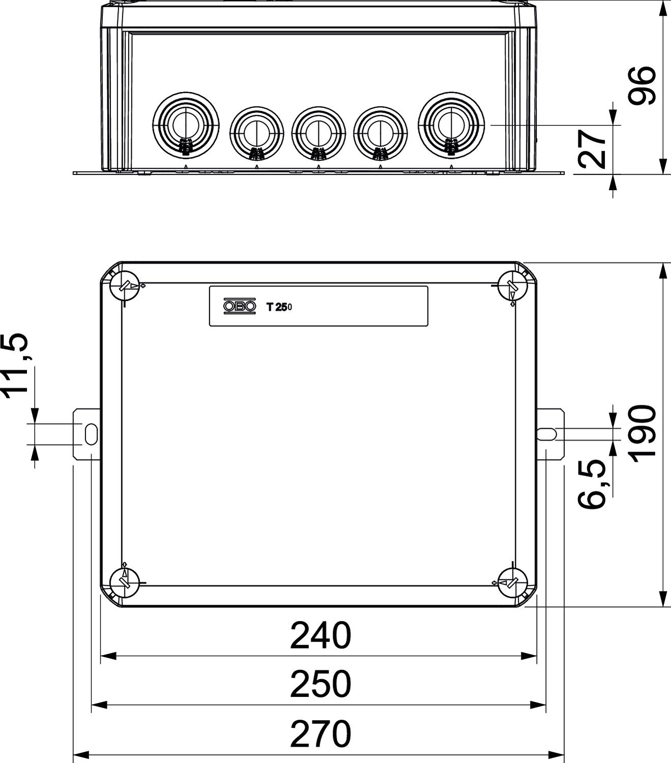 Product descriptionJunction box with one fuse holder and soft plug-in seals. Sufficiently large wiring compartment through diagonally arranged connection unit with completely pre-mounted, high-temperature-resistant ceramic terminals. Green-yellow labelled protective conductor terminal. Fastening on easily accessible external flaps. Approved for cable systems that maintain the electrical function according to DIN 4102 Part 12 with the classes E30, E60 and E90. Ceramic clamps have been tested according to DIN EN 60998-2-1:2004.