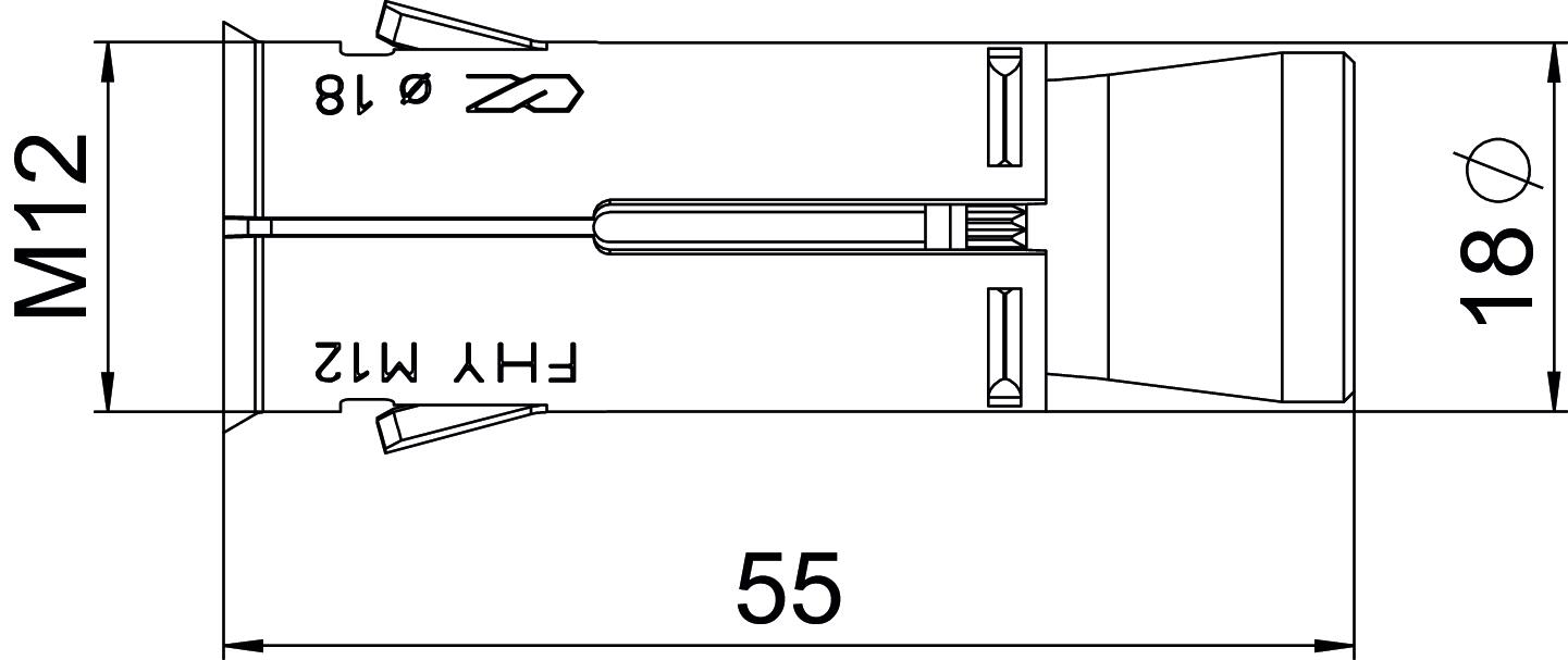 Colour zinc Dimension 18x55 Drill hole depth 70 mm Drill hole diameter, min. 18 mm Material Steel Surface Electrogalvanized Thread M12 Thread metric 12 Thread type Metric With bolts no With thread yes - All types