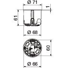 Airtight yes Cable entries 3 x 1.5 mm² 4 Cable entries 3 x 2.5 mm² / 5 x 1.5 mm² 2 Cable entries 5 x 2.5 mm² / 7 x 1.5 mm² 2 CO2 Footprint (GWP) Cradle-to-Gate 0,0889 kg CO2e / 1 Piece Colour orange / grey Cover Without Cover fastening Screws , Device fixing Screws , Diameter 68 mm Dimension Ø68mm, H61mm Flame-resistant Acc. to VDE 0471/IEC 60695-2-11, test temperature 850°C for pipe diameter 20/25 mm Halogen-free yes Height 61 mm Impact-resistant no Material Polypropylene / Thermoplastic elastomer Milling hole diameter 68 mm No. of entries 10 Nominal cross-section, max. 2,5 mm² Nominal cross-section, min. 1,5 mm² Number of switch boxes 1 Protection rating IP30 Rated voltage 400 V Shape Round Sound insulation tested up to 70 dB according to ISO 10140-2 Suitable for plate thickness, max. 40 mm Suitable for plate thickness, min. 5 mm Support Connector Type of entry NYM cables, data cables and corrugated pipes Type of housing penetration Insertion membrane With bolts yes - All types