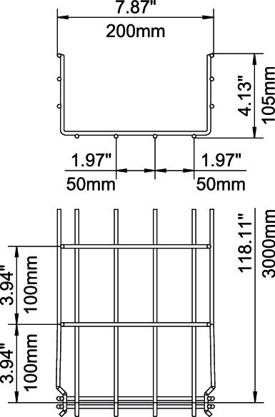 Product descriptionMesh cable tray with shaped connector of side height 105 mm.