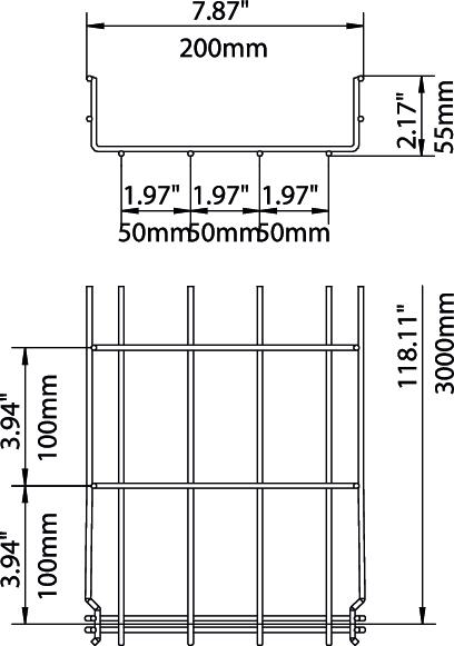 Product descriptionMesh cable tray with shaped connector of side height 55 mm.