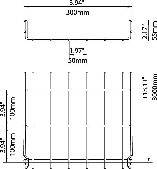 Product descriptionMesh cable tray with shaped connector of side height 55 mm.