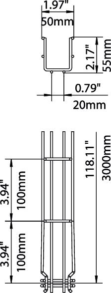 CO2 Footprint (GWP) Cradle-to-Gate 1,2752 kg CO2e / 1 Meter Colour zinc Connector version Integrated connector Dimension 55x50x3000 Dimension B 52 mm Dimension H 58 mm Fire protection Use of fire protection ceilings Height 2,17 in Height 55 mm Integrated partition Without Length 3000 mm Load test type according to IEC 61537 Type II Maintain electrical functions yes Material Steel Profile shape U-shaped Rustproof steel, pickled no Screwless connector yes Support spacing 1.0 m 0,35 kN/m Support spacing 1.5 m 0,2 kN/m Support spacing 2.0 m 0,1 kN/m Support spacing 2.5 m 0,1 kN/m Surface Electrogalvanized Type of connector, cable support system Click fastening Usable cross-section 1600 mm² Usable cross-section 16 cm² Wide-span version no Width 1,97 in Width 50 mm Wire diameter 3,9 mm Technical data
