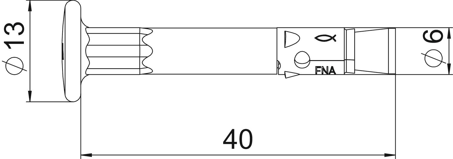 Product descriptionNail tie with nail head for the anchoring of, for example, fire protection products, mounting rails, metal clips, substructures made of wood and metal, etc. on walls and ceilings from cracked concrete in indoor and outdoor areas. To knock in with a hammer or rotary drill When loads occur the nail tie spreads out automatically and anchors itself in the drill hole. Rustproof and highly corrosion-resistant. Fire-safety tested, fire protection class R 120 according to European Technical Assessment ETA-06/0175.