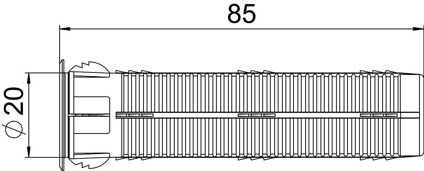 Colour Beige; RAL 1001 Dimension 85 x 26 Dimension D 20 mm Dimension L 85 mm Drill hole depth 95 mm Drill hole diameter, max. 20 mm Length 85 mm Material Polypropylene/polyethylene Self-tapping no Version for For pushing in With flange yes - All types