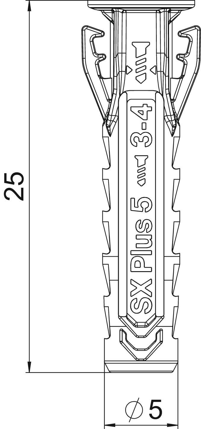 Colour Light grey Diameter 5 mm Dimension 5x25 Dimension D 5 mm Dimension L 25 mm Drill hole depth 35 mm Length 25 mm Material Polyamide Suitable for fastening with cable ties no Suitable for hexagonal wood screw yes Suitable for screw diameter, max. 4 mm Suitable for screw diameter, min. 3 mm Version for Spreading anchor With bolts no - All types