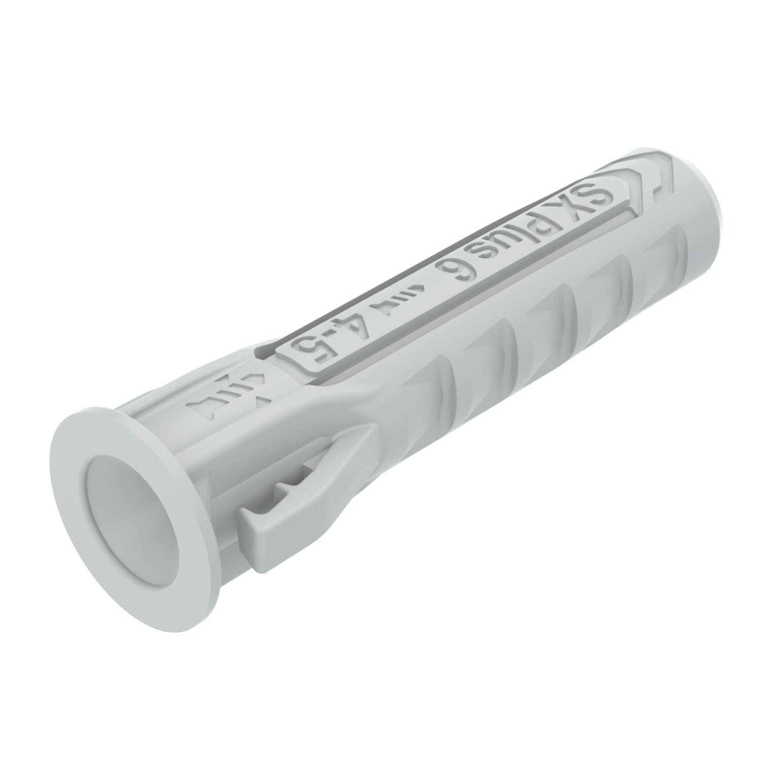 Product descriptionNylon spreading anchor for mounting components on walls and ceilings. Suitable for solid building materials such as concrete, sand-lime brick and masonry. With pre-fixing of the screw for easy overhead mounting. The given load values are valid for wood screws with the specified diameter.