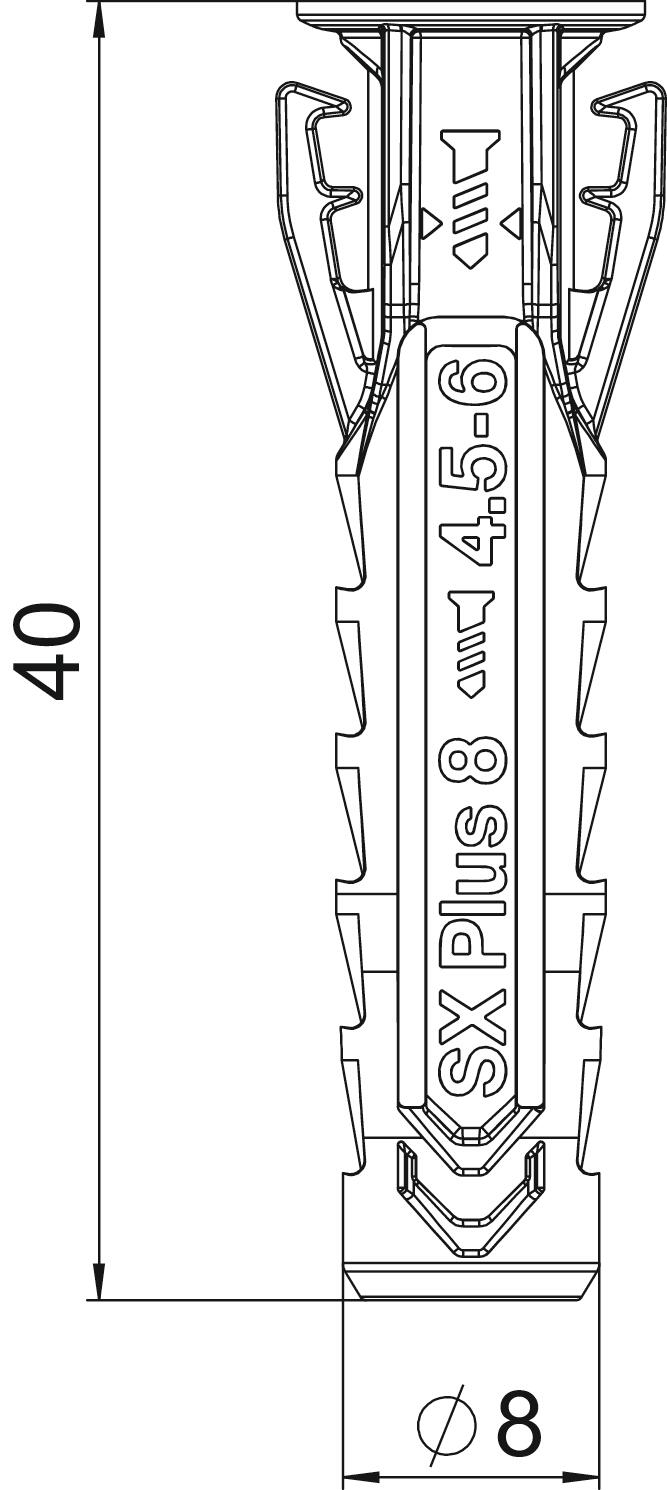 Colour Light grey Diameter 8 mm Dimension 8x40 Dimension D 8 mm Dimension L 40 mm Drill hole depth 50 mm Length 40 mm Material Polyamide Suitable for fastening with cable ties no Suitable for hexagonal wood screw yes Suitable for screw diameter, max. 6 mm Suitable for screw diameter, min. 4,5 mm Version for Spreading anchor With bolts no - All types
