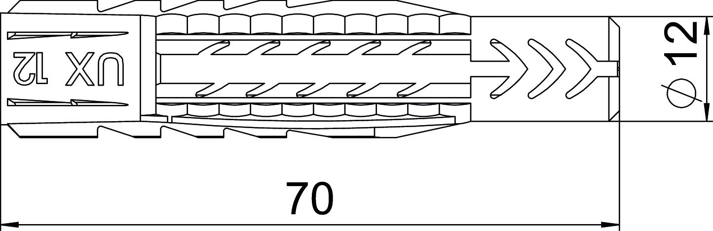 Colour Light grey Diameter 12 mm Dimension 12x70 Dimension D 12 mm Dimension L 70 mm Drill hole depth 85 mm Length 70 mm Material Polyamide Suitable for fastening with cable ties no Suitable for hexagonal wood screw yes Suitable for screw diameter, max. 10 mm Suitable for screw diameter, min. 8 mm Version for Universal anchor With bolts no - All types