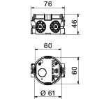 Airtight no CO2 Footprint (GWP) Cradle-to-Gate 0,0456 kg CO2e / 1 Piece Colour Jet black Combination entries Ø 20 / 25 mm 6 Cover Without Device fixing Screws or spreading claws Diameter 60 mm Dimension Ø60mm, H46mm Entry from rear yes Equipment Without Flame-resistant acc. to VDE 0471/IEC 60695-2-11, test temperature 650°C for pipe diameter 20/25 mm Halogen-free yes Height 46 mm Impact-resistant no Material Polypropylene No. of entries 7 Nominal cross-section, max. 2,5 mm² Nominal cross-section, min. 1,5 mm² Pipe entries Ø 20 mm 1 Protection rating IP30 Rated voltage 400 V Shape Round Type of entry NYM cables, data cables and corrugated pipes Type of housing penetration Break-out opening With bolts no With nail strap no - All types