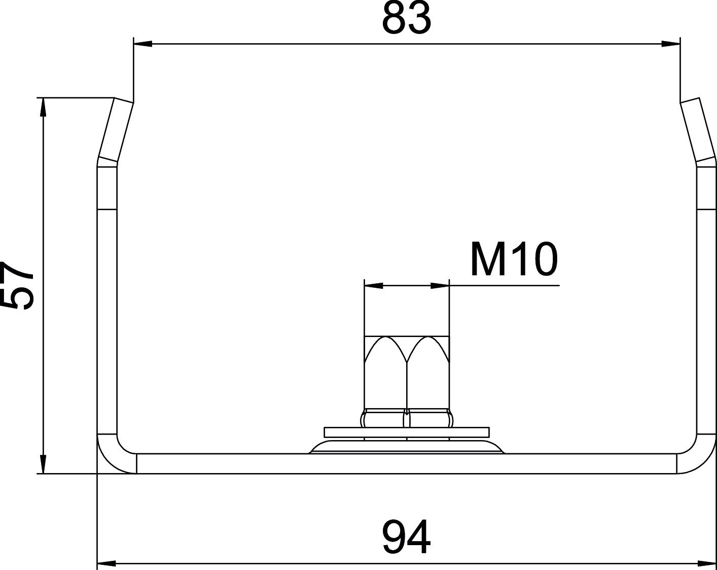 Центральні подвіси шириною 100, 150 и 200 мм мають додаткові отвори в нижній частині для кріплення до дна лотка для вогнестійкості згідно DIN 4102 часть 12.