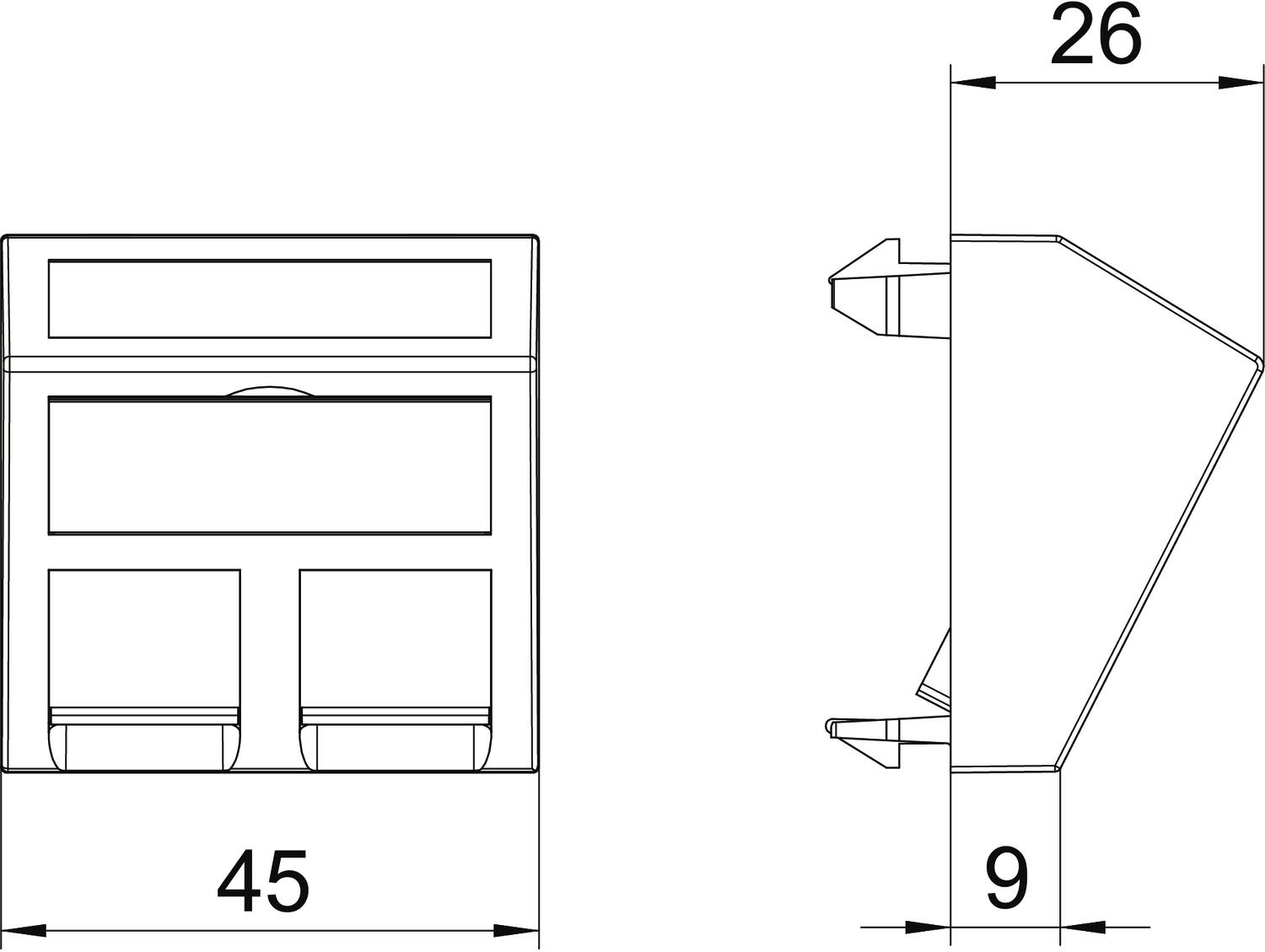 Опис продуктуІнформаційна панель для встановлення двох модулів RJ45. Кріплення підходить для горизонтального та вертикального монтажу. Тип EP має спеціальний тримач для модулів і призначений для непрямого кріплення модулів з'єднання даних у монтажному отворі.