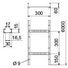 Опис продуктуКабельростр з висотою стінки 60 мм з поперечинами з С-профілю, які зафіксовані заклепками нагору (конструкція VS).