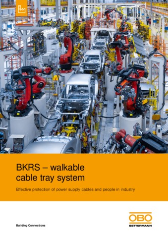 Умови експлуатації на сучасних промислових об’єктах не дають змогу забезпечити надійний захист кабелів електроживлення, кабелів передавання даних і кабелів керування. Забруднення, вібрації та вплив промислових факторів формують суворі умови експлуатації. Саме тому надзвичайно важливо забезпечити умови, за яких обладнання машин і систем могло б надійно витримувати різні навантаження. Система прохідних кабельних лотків BKRS від OBO формує ізольований простір для прокладання кабелів і проводів, захищаючи їх від забруднення й наступання. Спеціальні пилозахисні елементи на кабельних коробах унеможливлюють потрапляння сторонніх предметів.