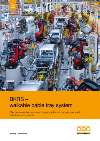 Умови експлуатації на сучасних промислових об’єктах не дають змогу забезпечити надійний захист кабелів електроживлення, кабелів передавання даних і кабелів керування. Забруднення, вібрації та вплив промислових факторів формують суворі умови експлуатації. Саме тому надзвичайно важливо забезпечити умови, за яких обладнання машин і систем могло б надійно витримувати різні навантаження. Система прохідних кабельних лотків BKRS від OBO формує ізольований простір для прокладання кабелів і проводів, захищаючи їх від забруднення й наступання. Спеціальні пилозахисні елементи на кабельних коробах унеможливлюють потрапляння сторонніх предметів.