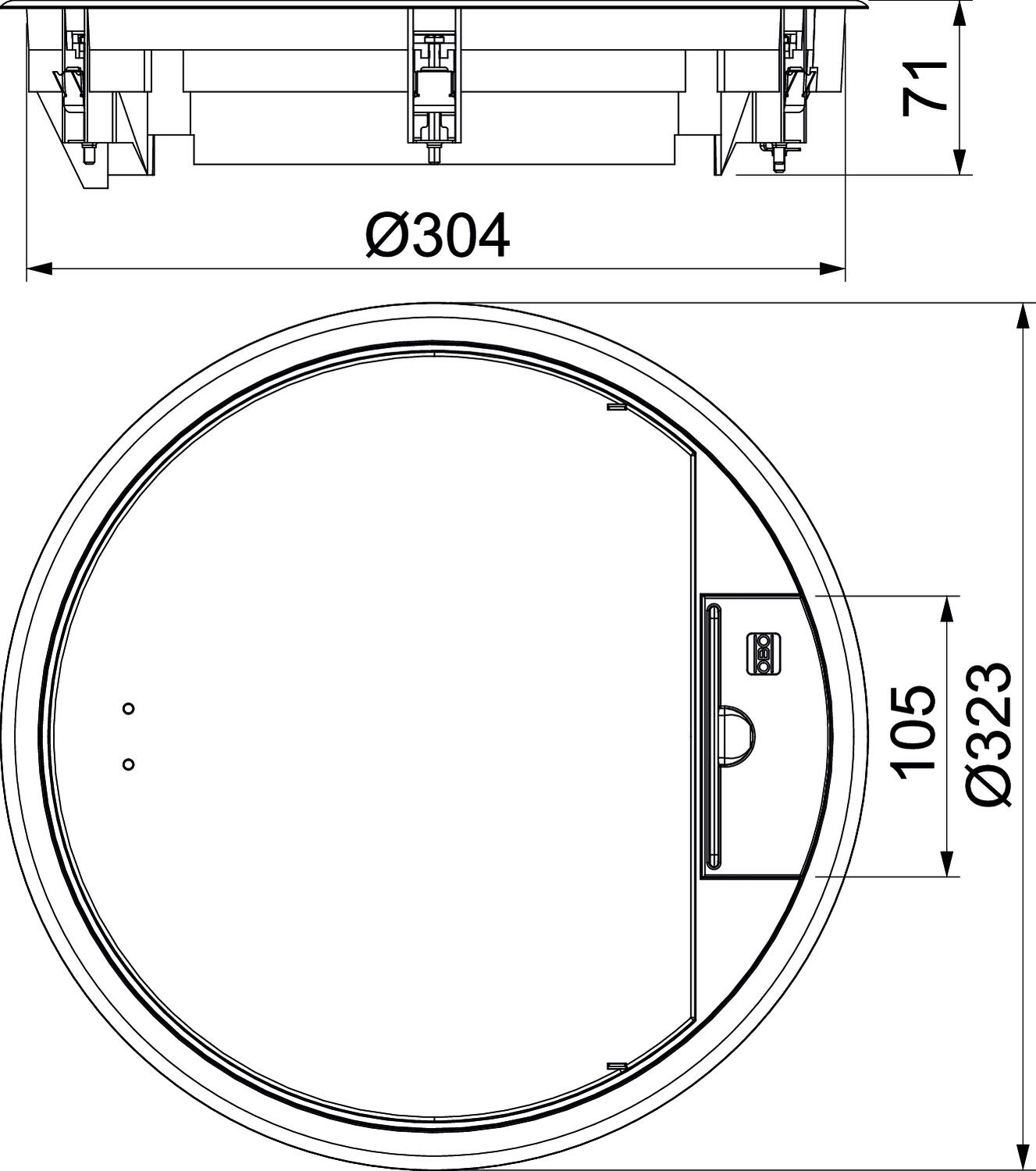 Розетковий люк з ручкою-скобою, для установки монтажного кронштейна MT9. Можна встановити накладки типу APMT5