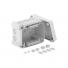 Опис продуктуРозподільча коробка, з клемником для підключення кабелів і провідників у приміщенні або ззовні. Прямокутна форма з пробивними ввідними отворами. Підходить для настінного й стельового монтажу з можливістю кріплення зсередини, ззовні та через вершину кута. Особлива ударостійкість з IK09. Кришка із поворотним фіксатором, з можливістю пломбування. Виготовлено з матеріалів без вмісту галогенів та стійких до УФ. Включно з 5 клемниками кожен із 4 клемними позиціями.