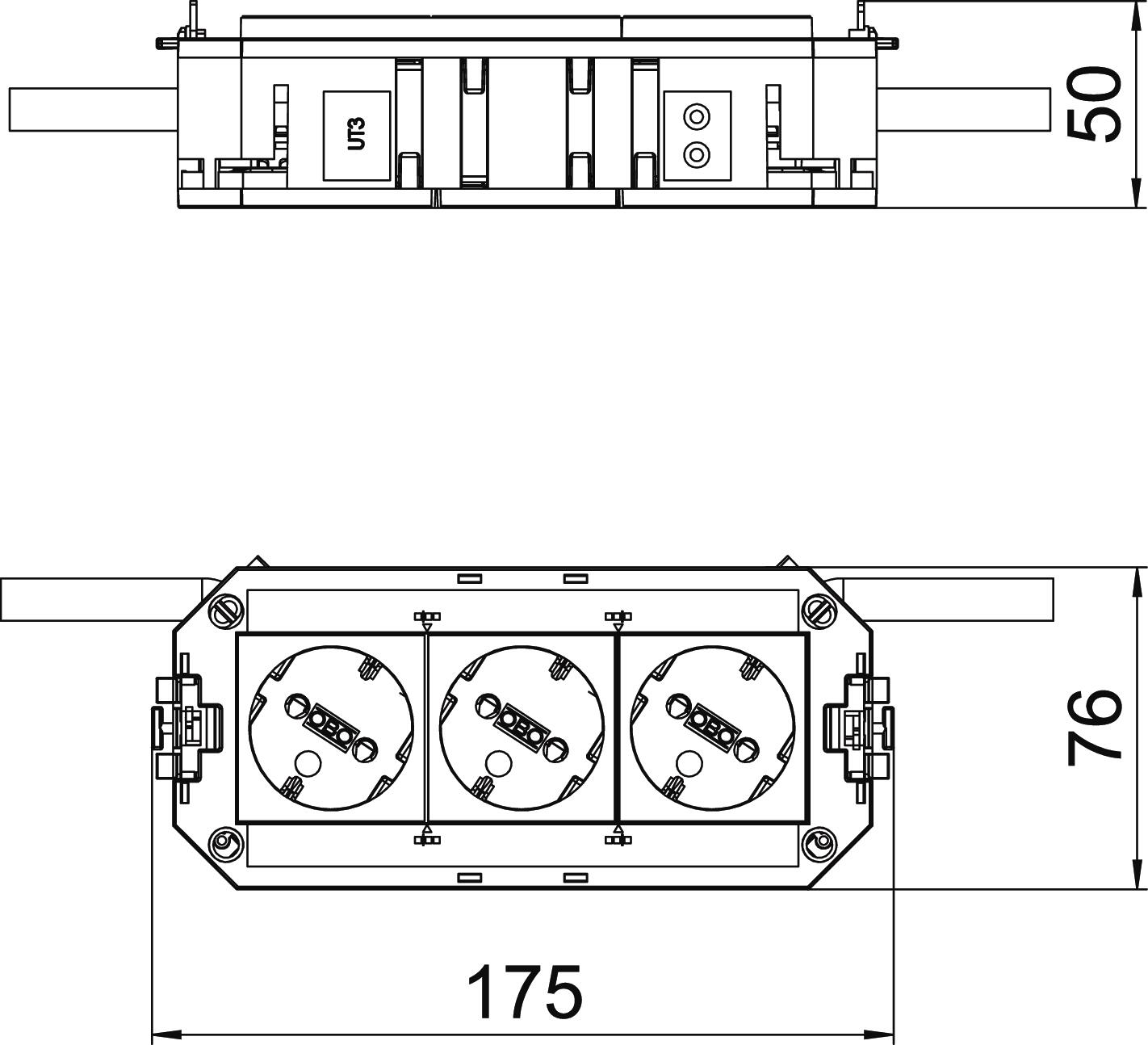 Опис продуктуГотовий до підключення універсальний розетковий супорт UTC3 має 2 попередньо встановлені розетки із захисними контактами 33° білого кольору, 16 А та одну попередньо встановлену розетку із захисними контактами 33° помаранчевого кольору, 16 А. Підходить для з'єднувальних кабелів VL та установки в розеткові люки номінальних розмірів 2, 4, R4 та R7.