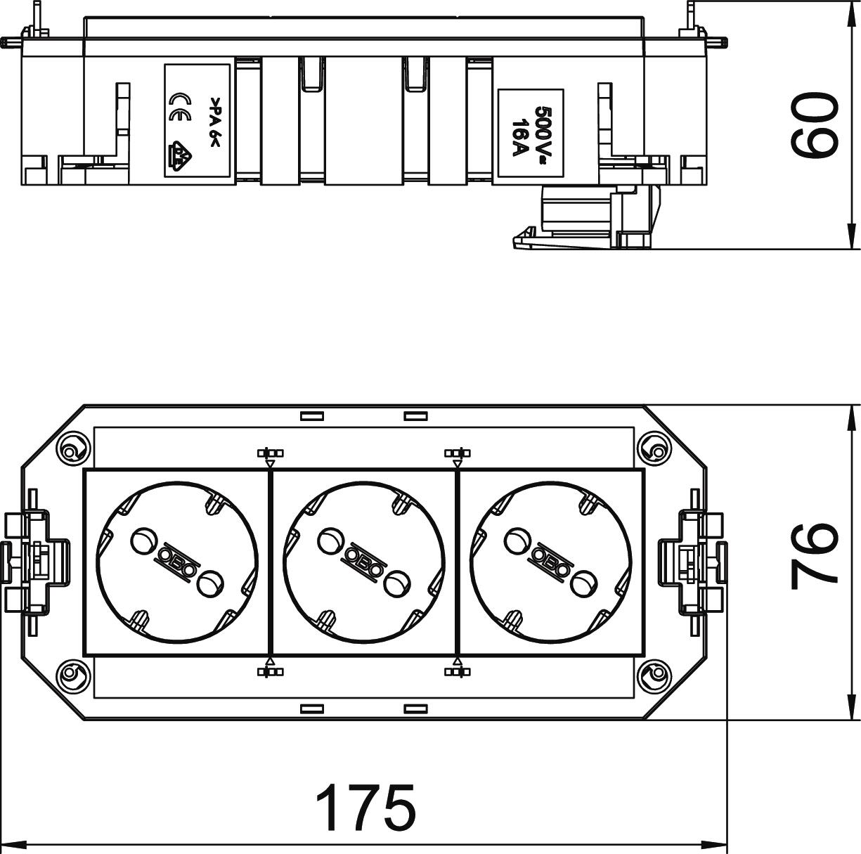 Опис продуктуГотовий до підключення універсальний розетковий супорт UTC3, має три попередньо встановлені розетки з захисним контактом 33°, 16 А. Підходить для з'єднувальних кабелів VL та розеткових люків номінальних розмірів 2, 4, R4, 6 та R7.